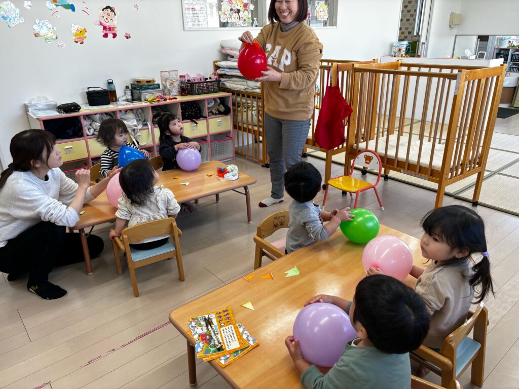 みんなの心の中の鬼がいなくなるように、風船で鬼さんの製作をしました✨